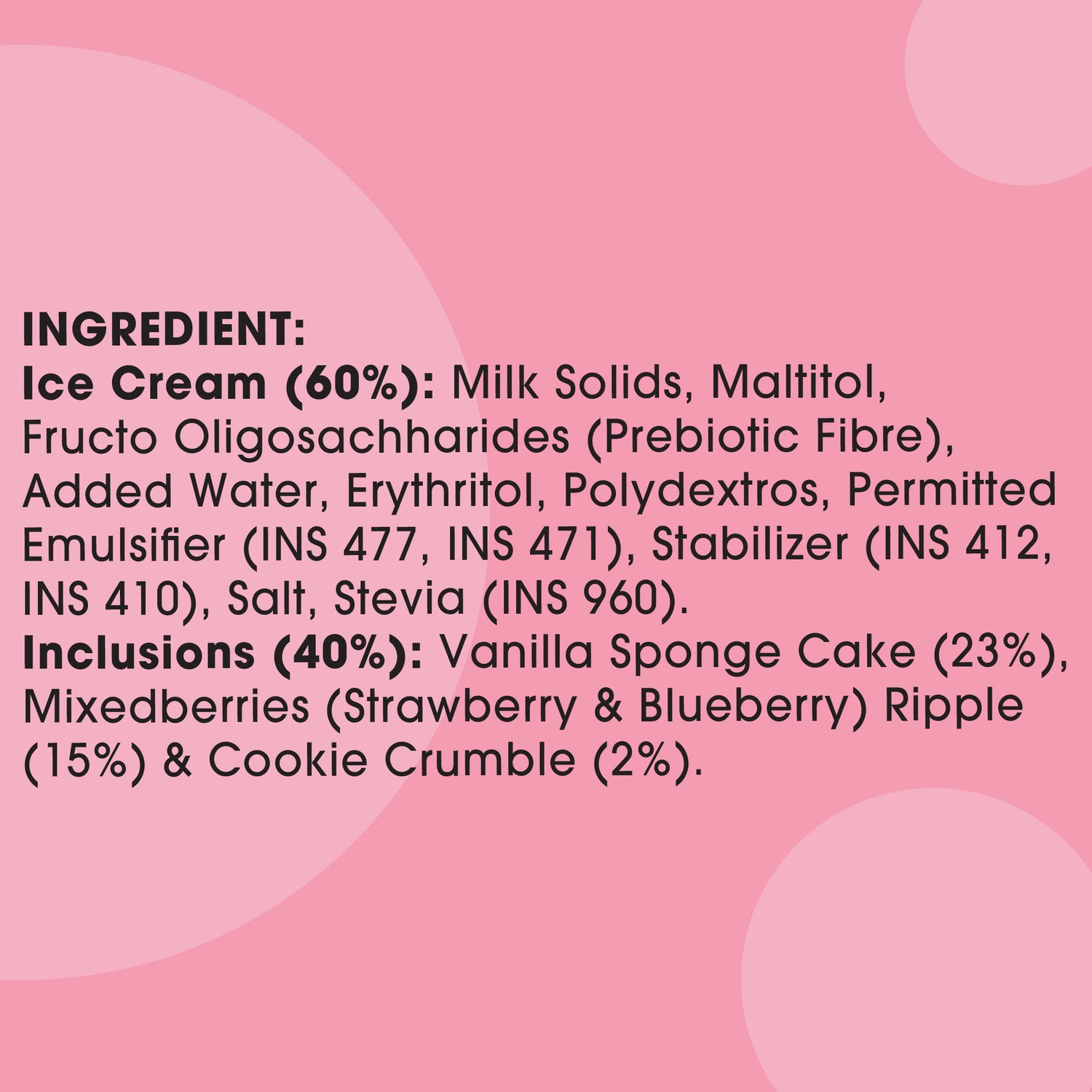 Vanilla ice cream layered with buttery crumb and berry ripple. A guilt-free delight with no added sugar, 114 calories per serving, 2 servings per tub.