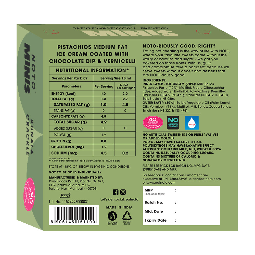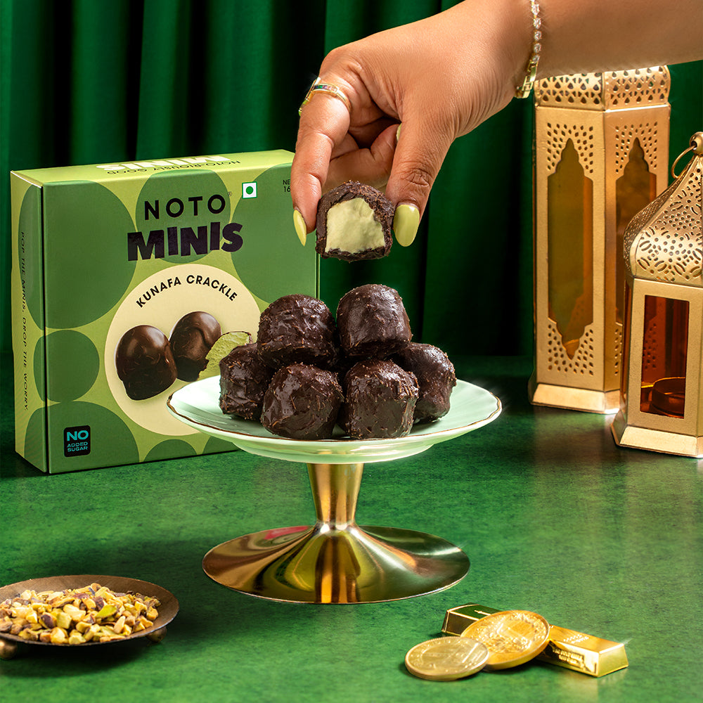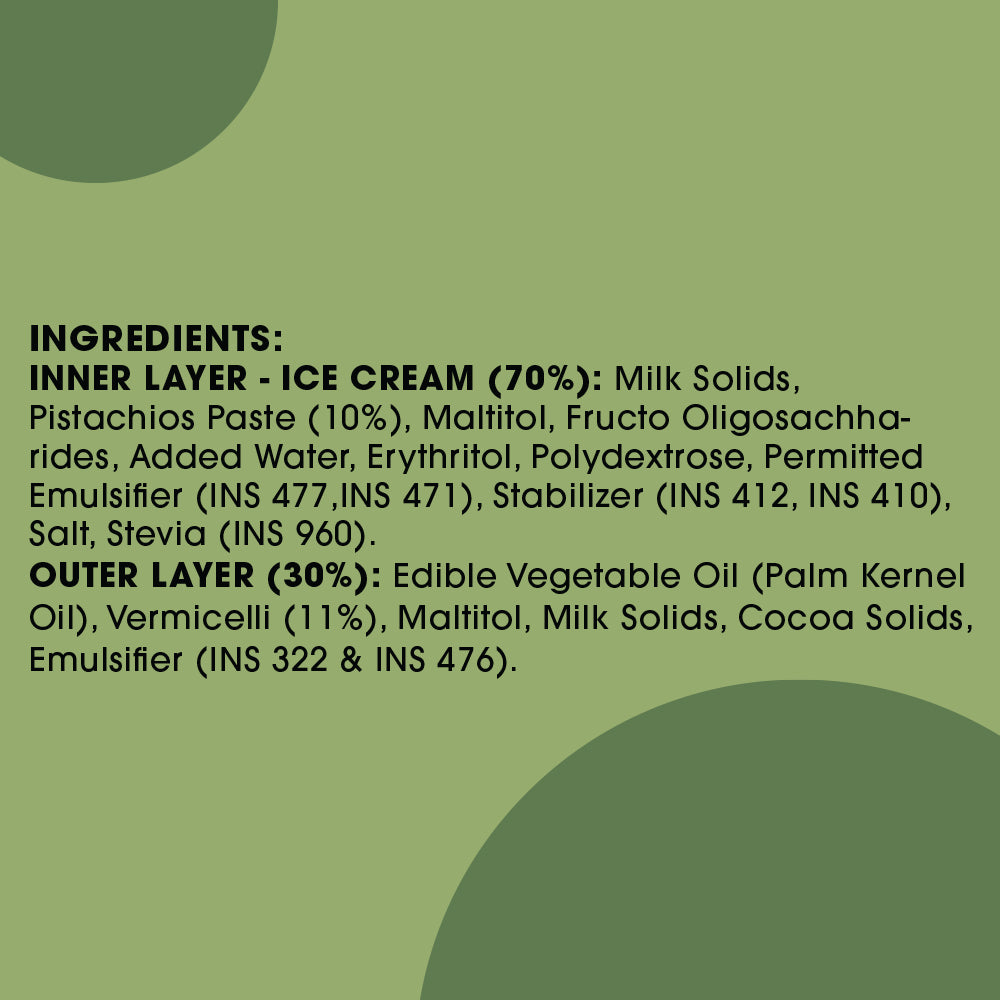 A royal treat! Crunchy kunafa vermicelli with pistachio ice cream. Mindful indulgence at 40 calories each, no added sugar.