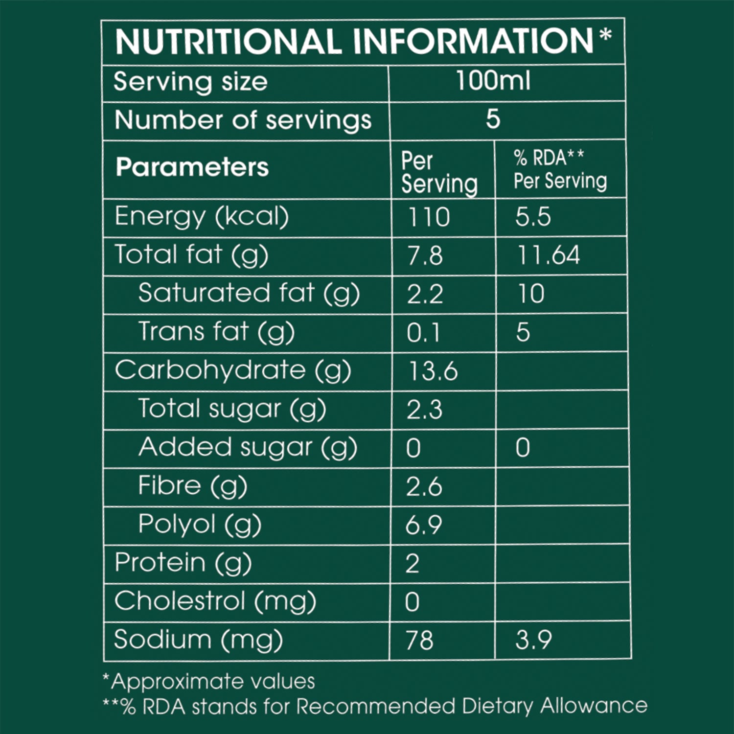 Nutty and creamy vegan indulgence! Guilt-free at 110 calories per serving, no added sugar.