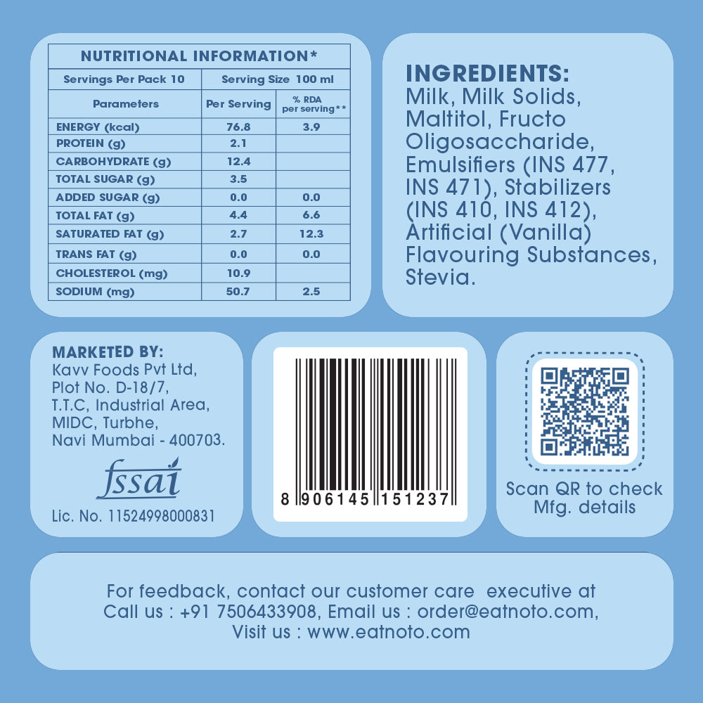 A 1-litre sugar-free vanilla ice cream crafted with full fat milk for creamy richness, high in fiber for balanced wellness, and made with absolutely no vegetable oil. It’s more than just an ice cream, it’s a mindful, versatile staple that brings everyday indulgence to your home.